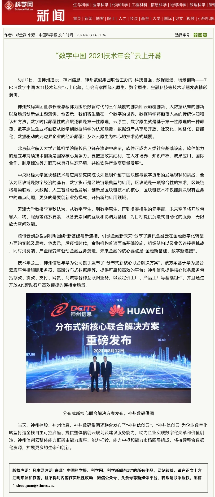 2021数字中国技术年会 神州控股、神州信息、今年会集团连发重磅产品